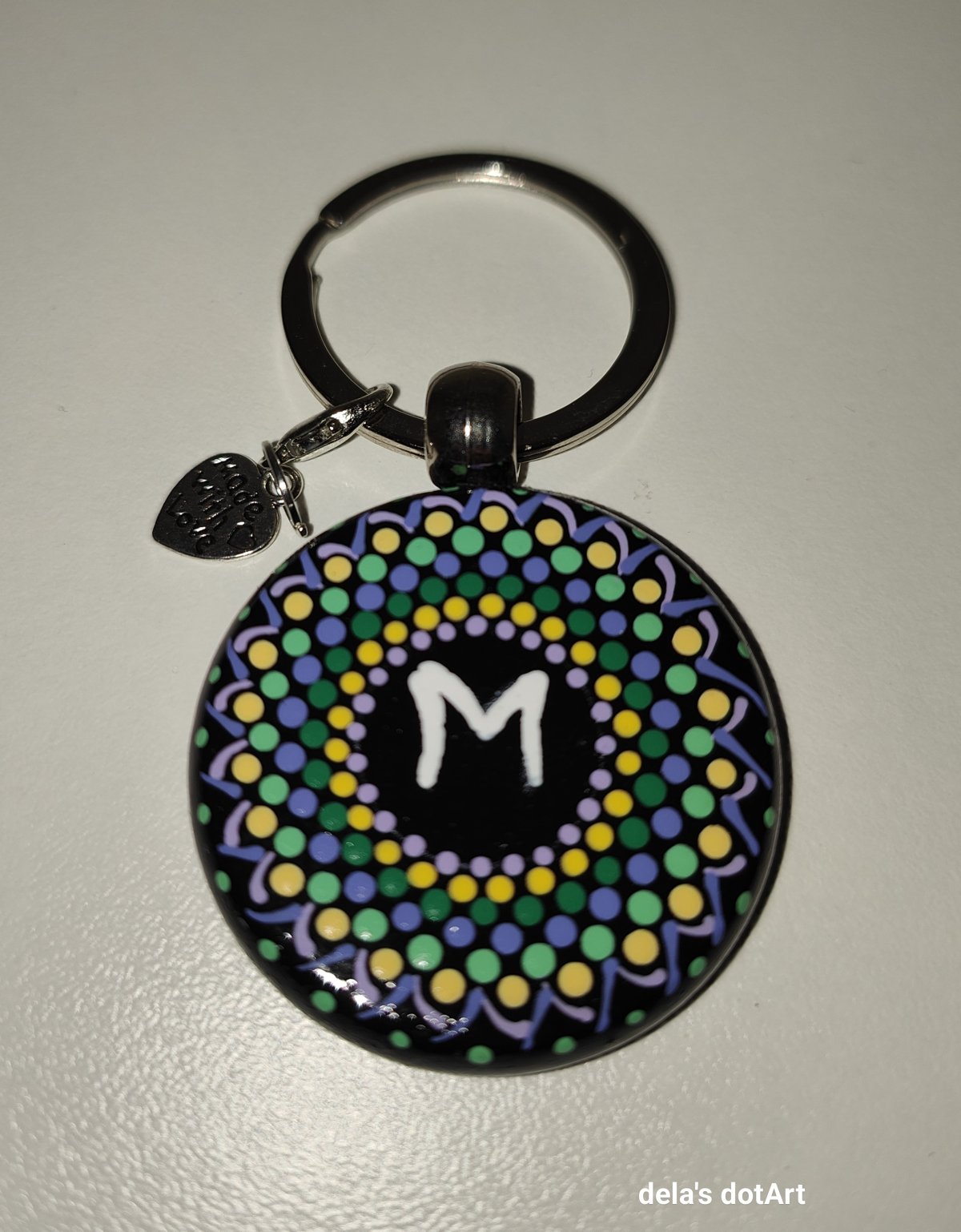 Ein handgefertigter Schlüsselanhänger mit individuellem Buchstaben in der Mitte