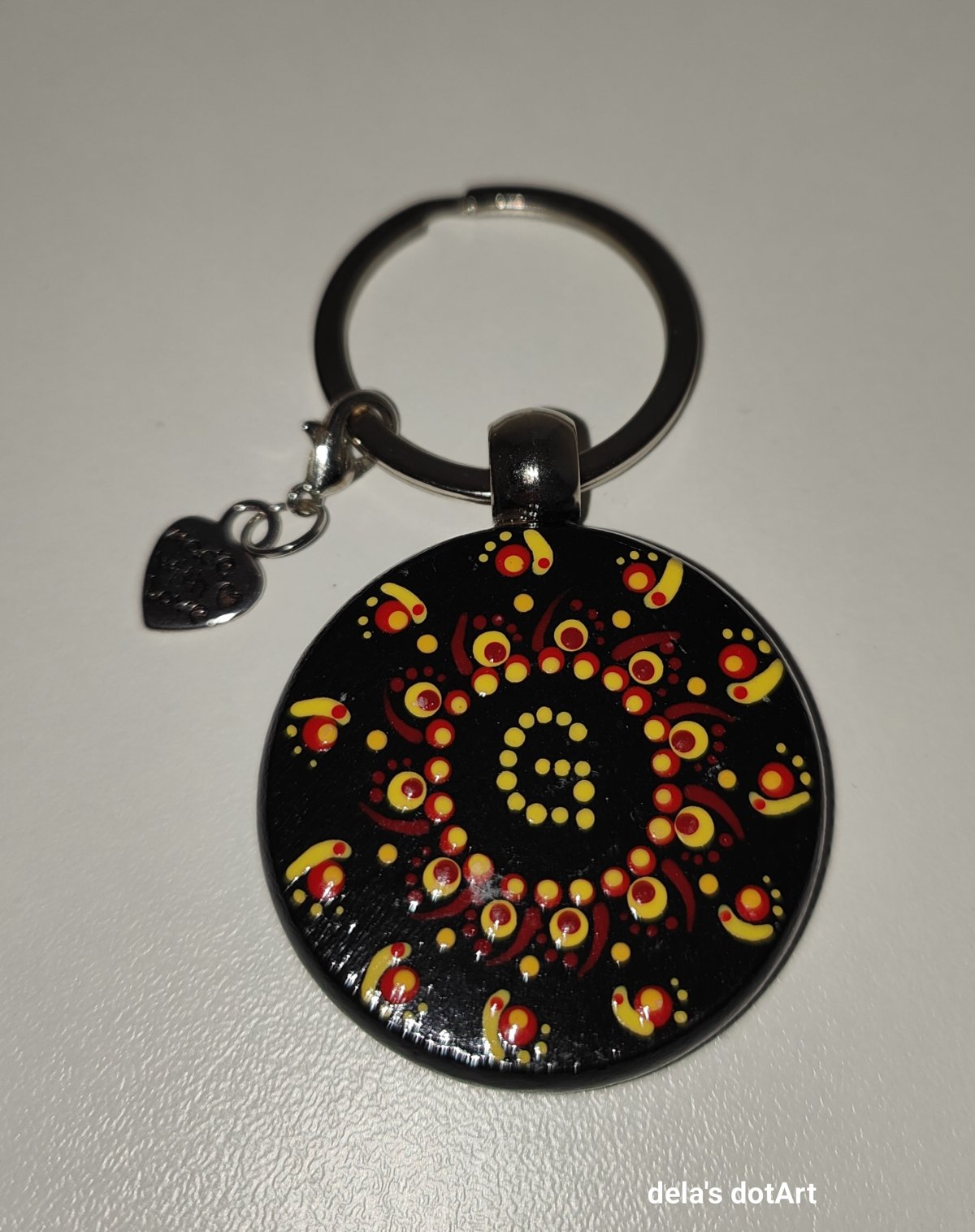 Ein handgefertigter Schlüsselanhänger mit individuellem Buchstaben in der Mitte