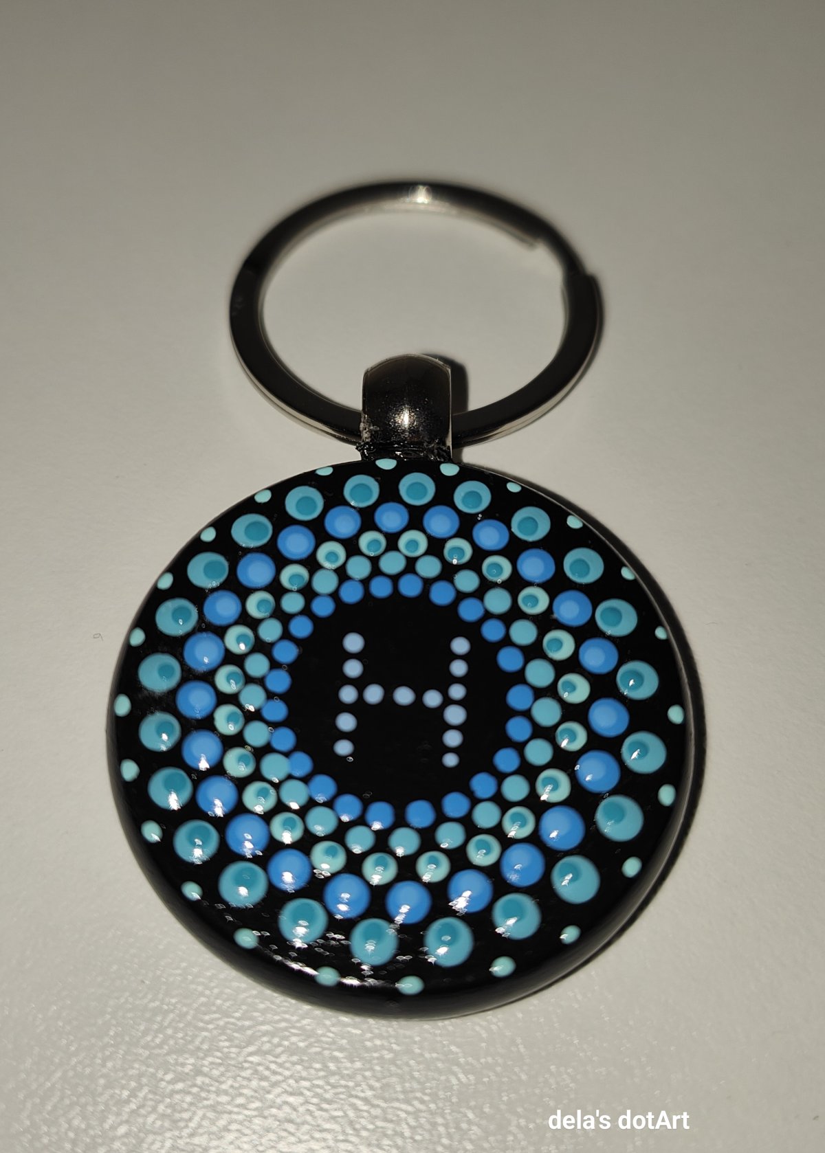 Ein handgefertigter Schlüsselanhänger mit individuellem Buchstaben in der Mitte