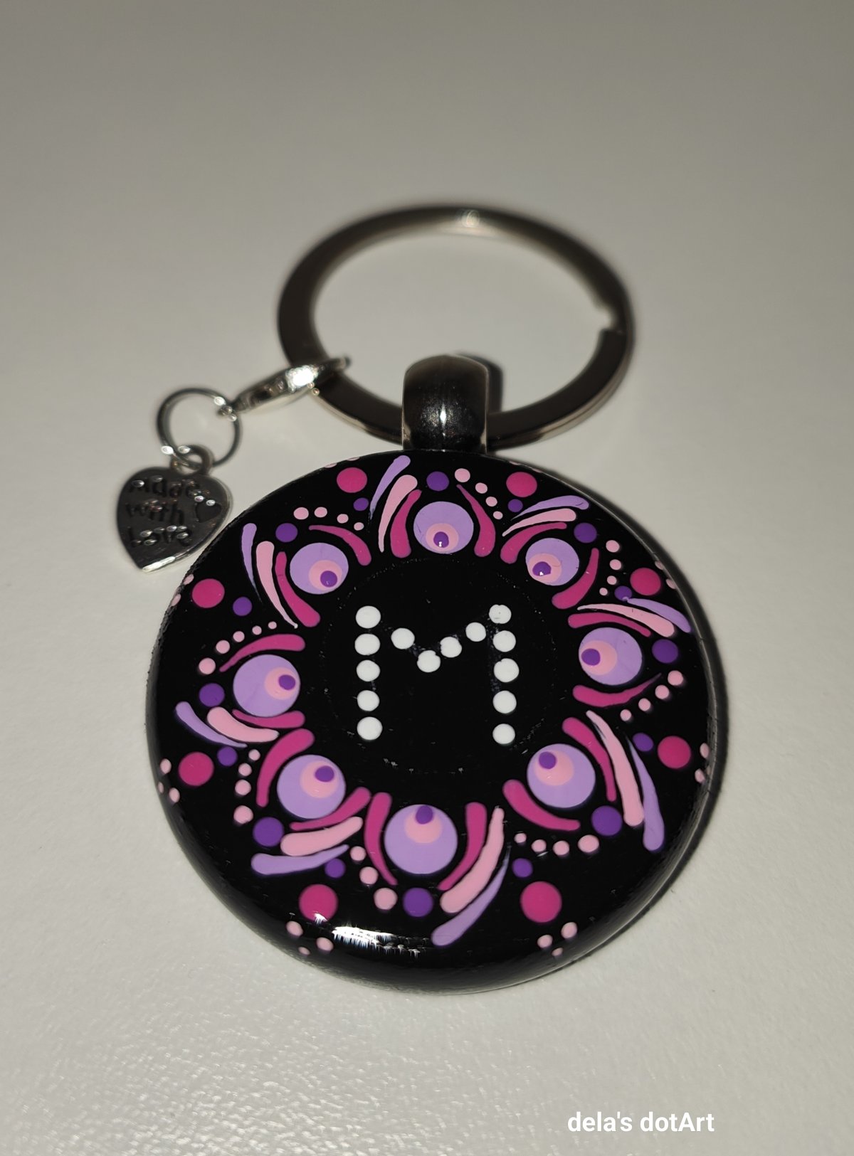 Ein handgefertigter Schlüsselanhänger mit individuellem Buchstaben in der Mitte