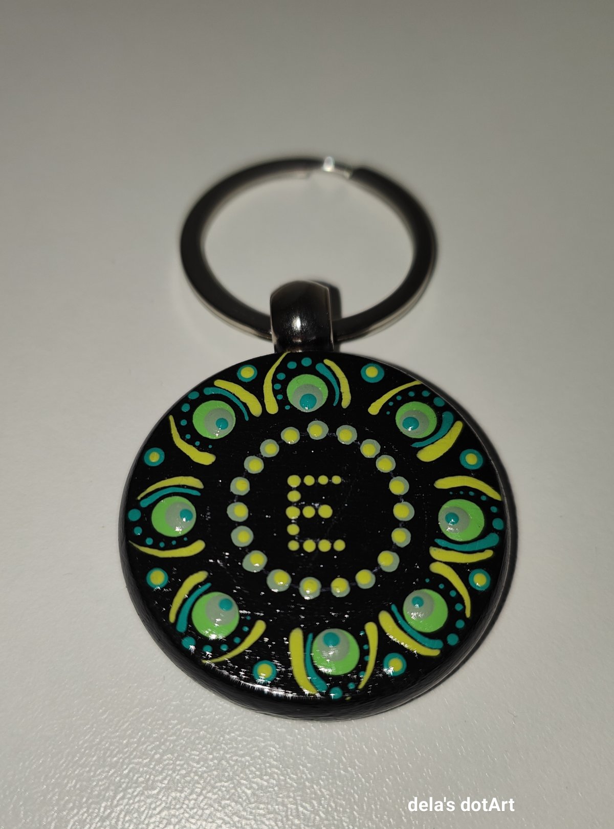 Ein handgefertigter Schlüsselanhänger mit individuellem Buchstaben in der Mitte