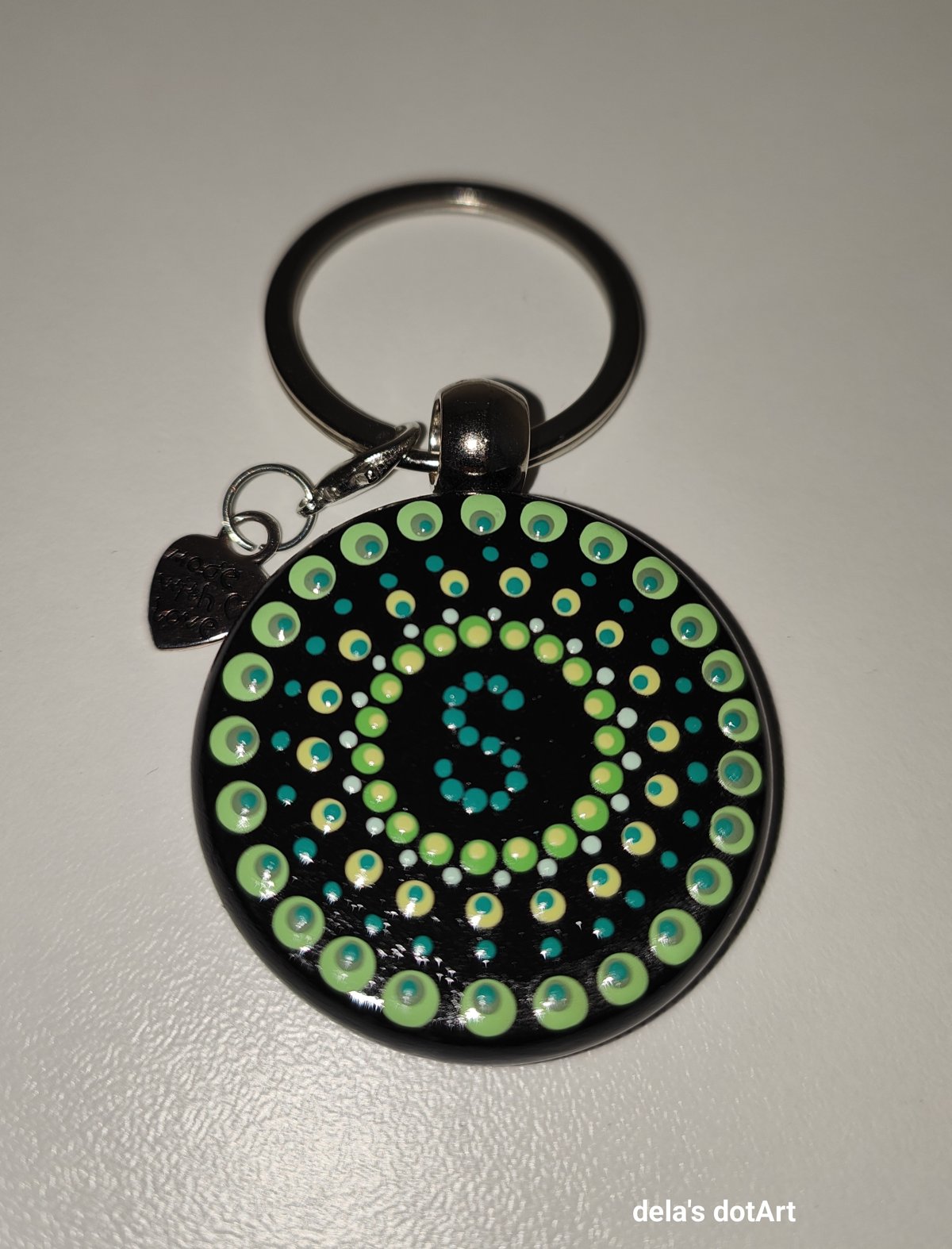 Ein handgefertigter Schlüsselanhänger mit individuellem Buchstaben in der Mitte
