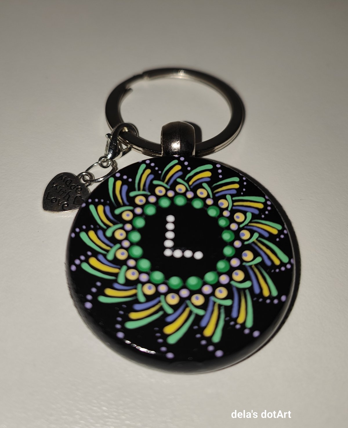 Ein handgefertigter Schlüsselanhänger mit individuellem Buchstaben in der Mitte