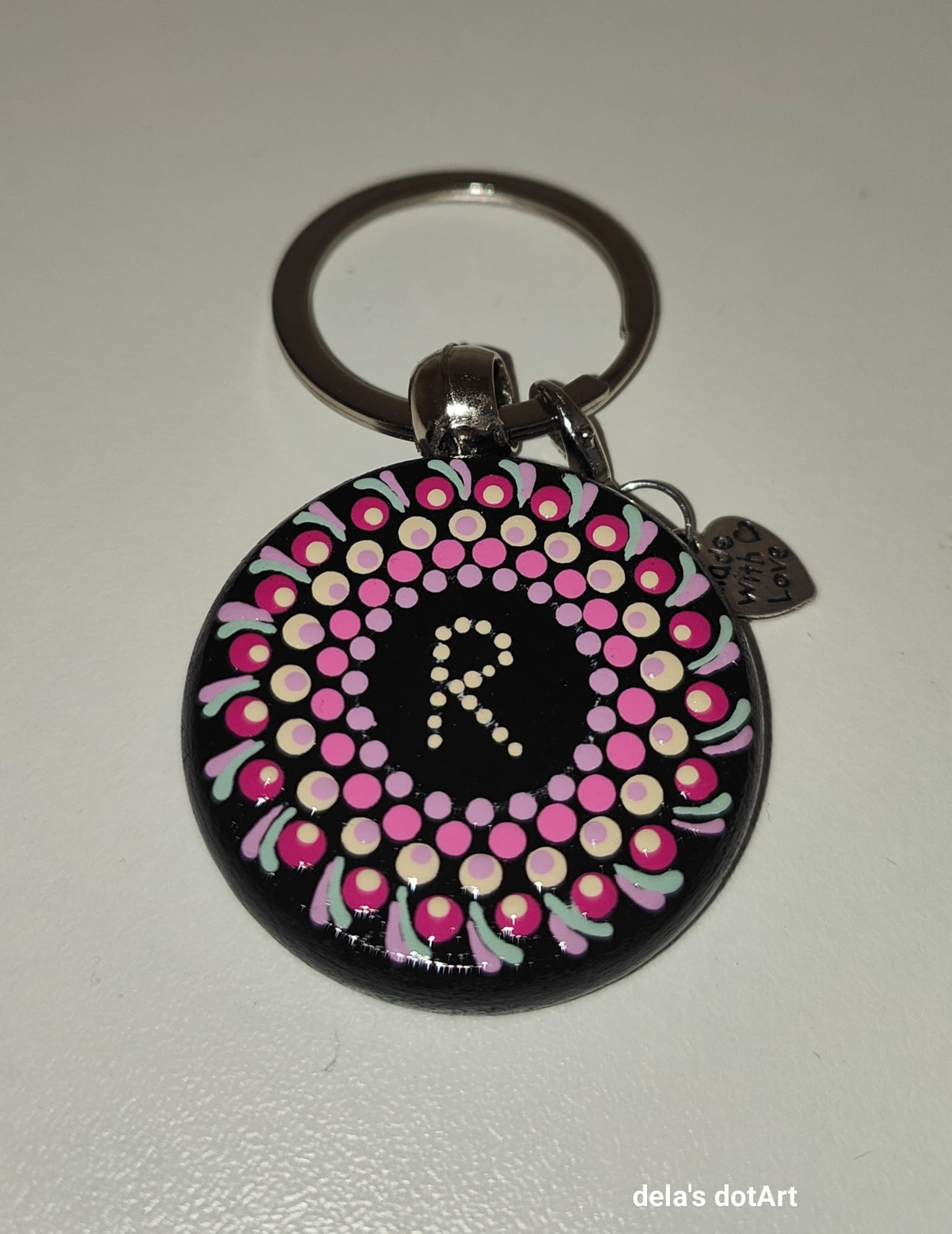 Ein handgefertigter Schlüsselanhänger mit individuellem Buchstaben in der Mitte