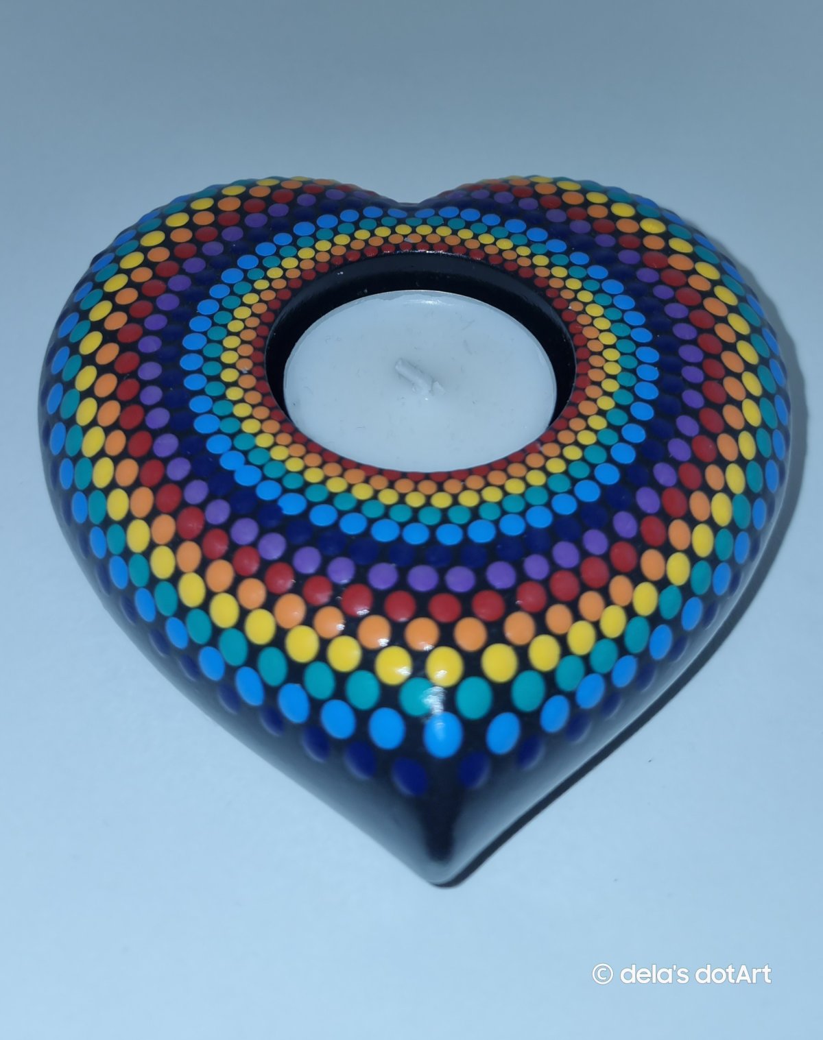 Mit viel Liebe im Dot-Painting-Stil handbemalt, wird jedes Stück zum farbenfrohen Unikat.